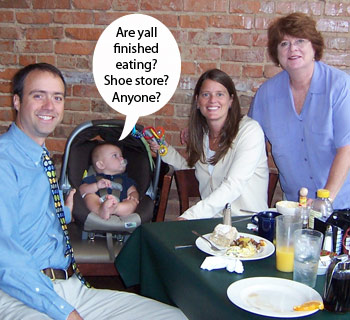 July 29, 2008 We are house sitting for my parents at the lake house right now, and we are loving life. It's beautiful up here, and several good friends have come into town to enjoy it with us. The big news (it was actually quite small when you put it into perspective) was that Brown got his first cold ever this week! Crazy, eh? He made it 71/2 months without a cold, which I'm sure had nothing to do with his psycho parents who carry hand sanitizer in their pockets and spray down strangers when they get too close. OK, we don't really... but deep down we would probably like to. He got over the cold in 24 hours, so it wasn't bad at all. I feel like we've been initiated or something into "real" parenthood now. Brown is doing great. My favorite thing about Brown these days (well, one of my top 148 favorite things about him), is that when he starts getting fussy and whiny, I can almost ALWAYS make him laugh and stop fussing. It's awesome. It's like I can see his wheels turning and in his mind as he's crying and I start making faces at him and playing with him, he thinks, "alright, alright...I give... it's not that bad. I know, I know." And then he smiles real big and it is really stinking cute. He's so sweet. Ummmph! Sorry... sometimes, I just have to grunt. He's just so squeezable and lovable. This video shows another one of my 148 top favorite things about him. Brown loves people and being held by anyone and watching people and stuff. But then at some point, his little introvert side kicks in and all of a sudden he wants us all to stop touching him and he just needs some space. So if we lay him down on a blanket or in his crib to be by himself for a few minutes, he is giddy. It's hilarious. Sometimes, the boy just needs his space. So this video is me eavesdropping into his little personal space after I laid him down for some "brown time" in his crib this afternoon. |