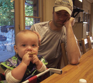September 9, 2008 I went to my 20th high school reunion this past weekend, which by the way was a fantastic time. One of the things with which I was struck was how instrumental many of my friends were in forming my life. As a grown man, this is interesting to look back on. As a father of a nine month old this is scary. Right now, we can trick ourselves into believing that we control the influences on the Brown. This is probably not true now and will become less true as we move forward into his older years. But enough of that. Brown has still not quite kicked his cold, but he is handling it like a real trooper. Doesn't seem to mind that he has dried nose crust everywhere. Has some pretty good coughing spells in the morning. Needs a good doctor is what I hear (believe me, I hear it...). Despite this, he is eating like a champ - no surprise here. He is beginning to discover more cause and effect type things. He can actually control his walker a bit better and go towards things (like dangerous things hanging from cabinets, etc). His feet are quite ticklish which is a fun thing for all. I don't think he realizes that it is his feet actually, but when you tickle him, you get a great response! He is beginning to say syllables which is kind of fun, sometimes saying things that sound remotely like dada, or hi. Of course these are just accidental and he is just as likely to say aassppfffshshhhaaap. But it is still pretty fun to talk back and forth with him. He is not even close to crawling, though he can roll all over, spin around and look over the side of the pack-n-play. We now find toys that have been tossed out of the crib. Amazing. He will be nine months this week. Hmm. |